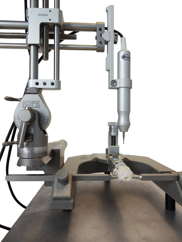 Tired of hand-guided, faulty drilling? Switch over to this smart and accurate CNC-machine. The stereotaxic Drill Robot allows unprecedented precision for the drilling procedure required prior stereotaxic microinjection procedures or electrode placement.