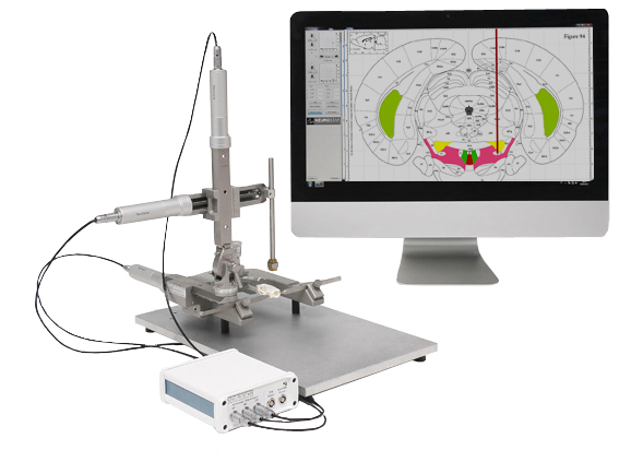 • StereoDrive achieves an unprecedented high-precision positioning unachieved by manual or digital-readout stereotaxic instruments.