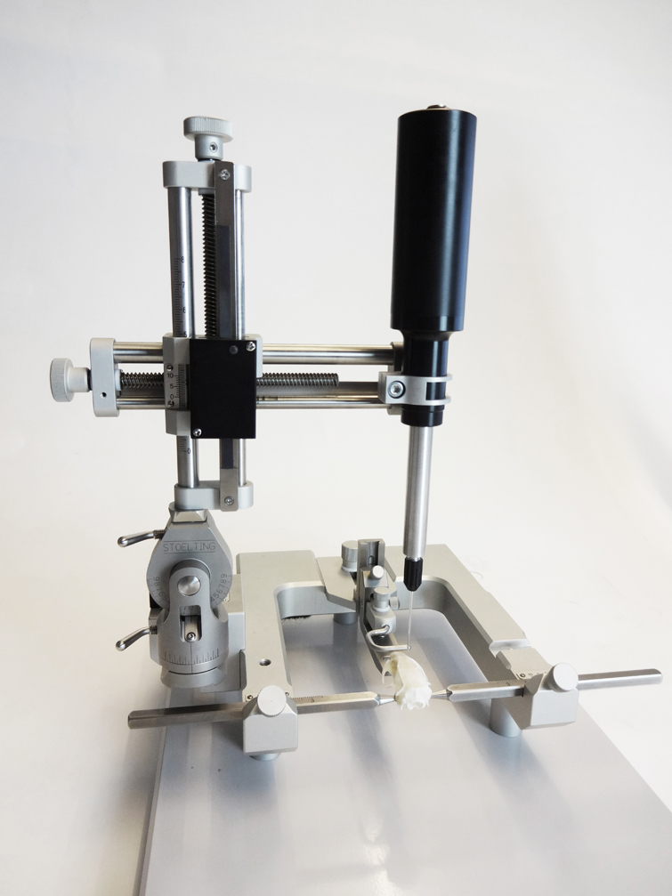 The Neurostar glass-capillary Nanoinjector was specially designed to perform accurate ultraprecise nanoliter volume injections. Nano uses borosilicate capillaries that can be pulled to ultrathin tips to achieve minimal harm to the tissue.Nano can be used as a standalone device for oocyte or embryo injections, but also attached to a stereotaxic instrument. In combination with the Robot Stereotaxic it benefits of the Robot features making it an Nanoinjection Robot, similar to to Microinjection Robot.